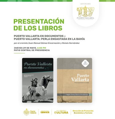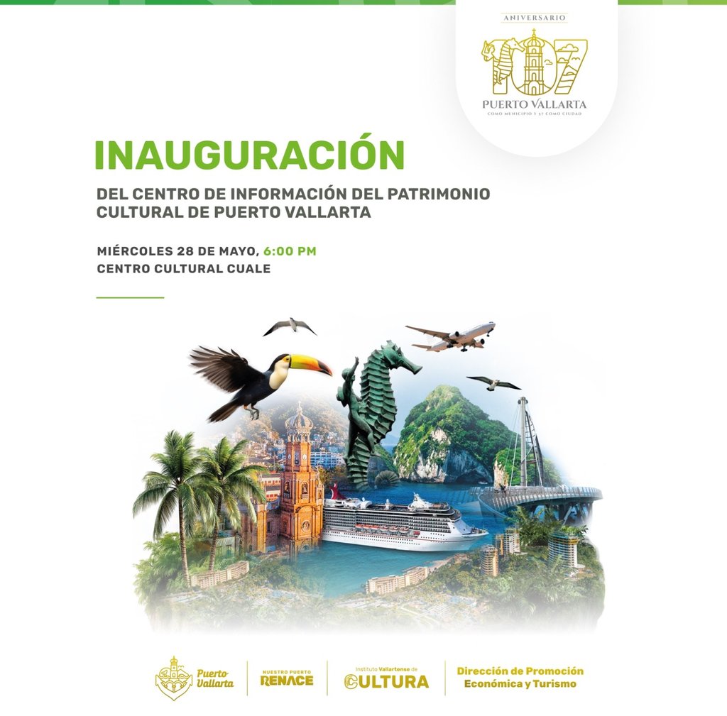 Este miércoles 28 de mayo, a las 6 de la tarde, se inaugurará el Centro de Información del Patrimonio Cultural de Puerto Vallarta en el Centro Cultural Cuale, seguido de la presentación del dúo "Luna Negra: Bolero, Ranchera y Más" a las 6:45 de la tarde en el mismo lugar.