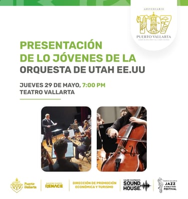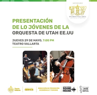 Al día siguiente, el jueves 29 de mayo, a las 11 de la mañana, se realizará la exhibición de arte "Puerto Vallarta desde el Corazón" en la Plaza de Armas. Luego, a las 6 de la tarde, se presentarán los libros "Puerto Vallarta en Documentos" y "Puerto Vallarta: Perla Engastada en la Bahía" por el cronista Juan Manuel Gómez Encarnación y Moisés Hernández en el patio central de la Presidencia. Finalmente, a las 7 de la noche, se presentarán los jóvenes de la Orquesta de Utah, Estados Unidos, en el Teatro Vallarta, ofreciendo un espectáculo musical de alta calidad.