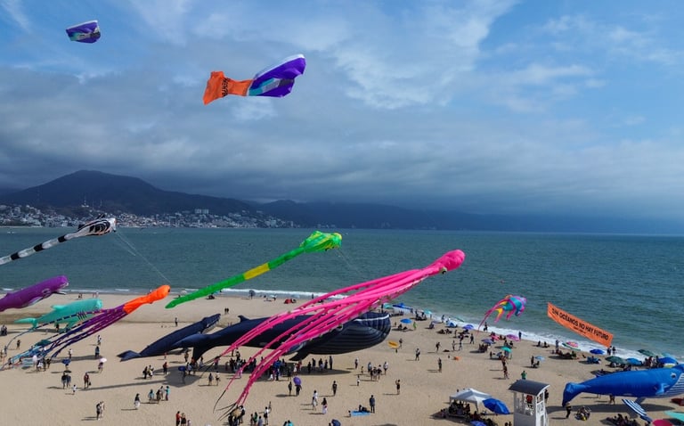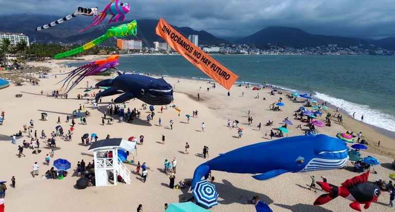 Con motivo del Día Mundial de los Océanos, que se celebra este 8 de junio, Greenpeace México organizó un espectáculo visual y consciente: un Festival de Papalotes Monumentales en la icónica Playa del Holi. Diecisiete papalotes gigantes, coloridos y conmovedores, ondearon entre las nubes como embajadores de las profundidades marinas, acompañados del urgente mensaje: