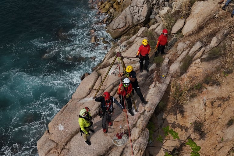 Durante el entrenamiento, el personal realizó ejercicios de rescate vertical, manejo de moto acuática, maniobras con embarcación y un simulacro de extracción de una víctima en zona de risco mediante tirolesa, fortaleciendo la respuesta del equipo ante situaciones de alto riesgo.