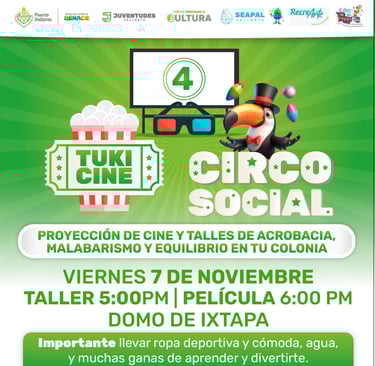 El Domo de Ixtapa se convertirá en el escenario de una jornada llena de diversión, aprendizaje y sana convivencia para la niñez vallartense. La primera edición del programa TukiCine ofrecerá, este viernes 7 de noviembre, una variedad de actividades culturales, recreativas y educativas para niñas, niños y jóvenes.
