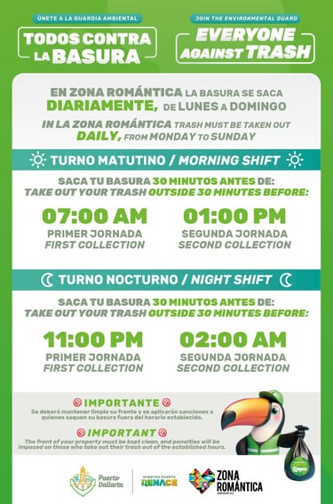 Llama Gobierno del Puerto Vallarta a vecinos de la Zona Romántica a respetar horarios de basura y evitar sanciones