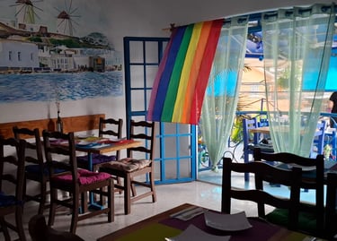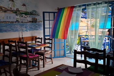 Es un espacio acogedor, lleno de color y cultura griega, donde te tratan como en casa. Aquí no importan las apariencias. Todos son bienvenidos, todos son familia.