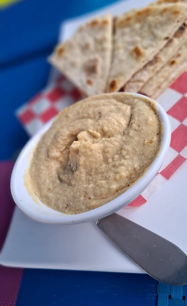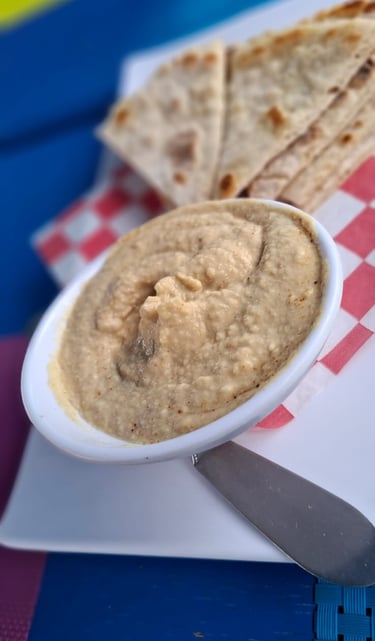 ✅ Hummus, ensaladas, mariscos, sopas y postres caseros