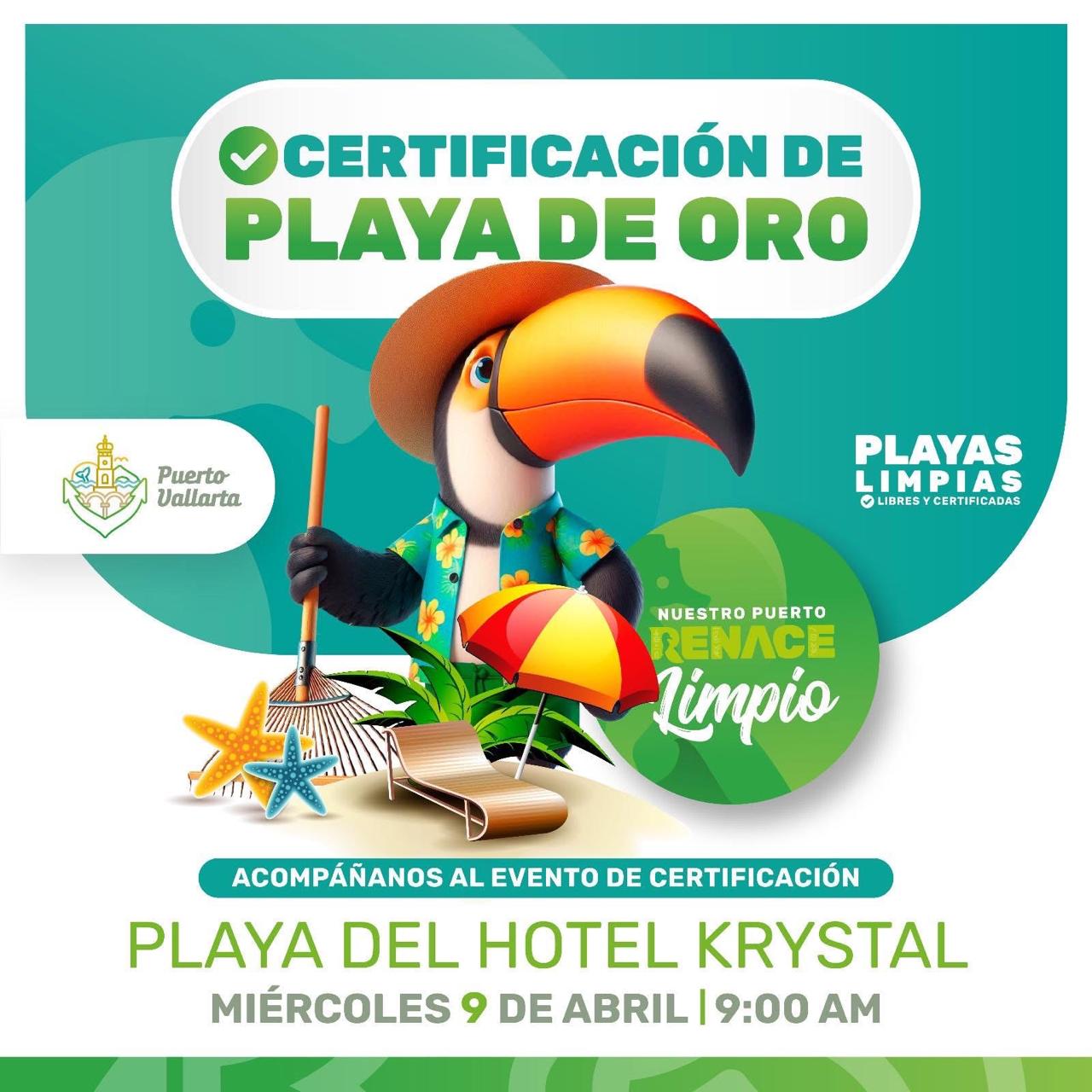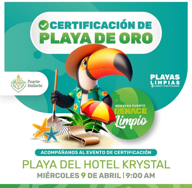 Este miércoles 9 de abril, a las 9:00 AM, acompáñanos en la Playa del Hotel Krystal para celebrar un gran logro: ¡Playa de Oro ha recuperado su certificación como "Playa Limpia Sustentable"! 🌟