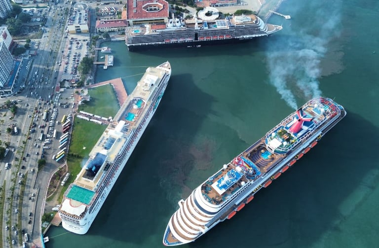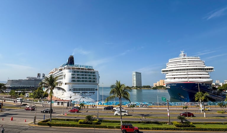 Este martes 25 de noviembre, la ciudad recibe con orgullo su cuarto arribo triple del año, con tres majestuosos cruceros que engalanan la bahía. El primero en llegar fue el Norwegian Jade, procedente de San Diego, con 2,670 pasajeros y 1,014 tripulantes, atracando en el muelle internacional #2 de ASIPONA Puerto Vallarta a las 06:00 horas. Poco después, el elegante Nieuw Amsterdam, también desde San Diego, arribó al muelle #1 con 2,253 pasajeros y 862 tripulantes. Finalmente, el imponente Carnival Panorama procedente de Long Beach, atracó en el muelle #3 a las 08:50 horas, transportando a 4,869 pasajeros y 1,417 tripulantes.