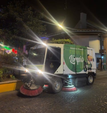 De manera complementaria, se realizaron labores de limpieza profunda con barredora mecánica en la ruta que va del Puente del Río Cuale, por las calles Insurgentes y Libertad, hasta la calle Juárez, a la altura de la Presidencia Municipal, como parte de la atención continua a vialidades de alta afluencia.