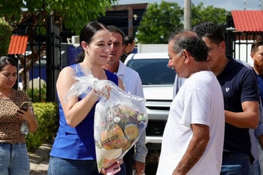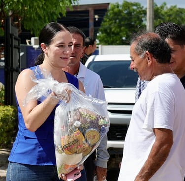 La maestra Lucía Carmina Michel, titular de la Oficialía Mayor Administrativa, encabezó este martes una nueva jornada en la que se repartieron despensas en el fraccionamiento Parque Las Palmas, una de las zonas más afectadas por las inundaciones. Personal del Ayuntamiento recorrió casa por casa para hacer llegar la ayuda directamente a las familias que más lo necesitan.
